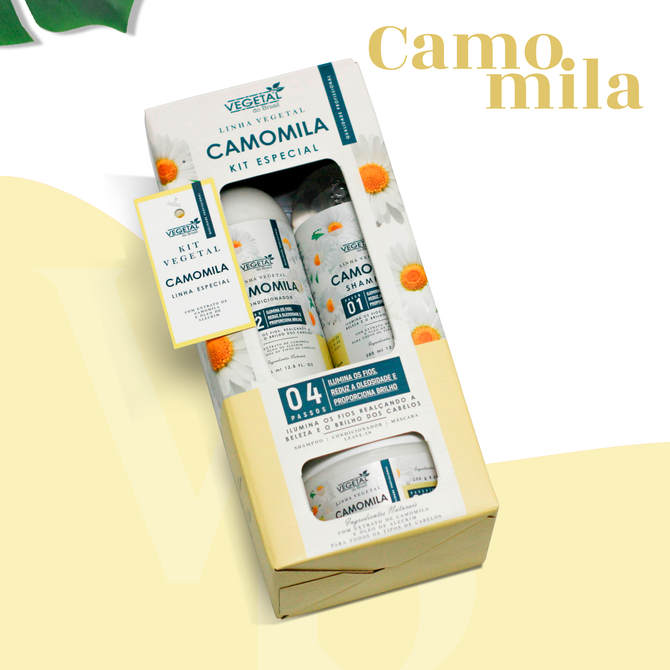 Possui em sua composição o extrato de Camomila, que possui o poder de clareamento natural dos fios, proporcionando um brilho impecável além de reduzir a oleosidade dos fios. Possui óleo de Alecrim, que ajuda na prevenção da queda dos fios, além de ajudar no crescimento rápido e saudável. Também possui óleo de algodão, que possui um alto poder emoliente, diminuindo o frizz e nutrindo os fios.