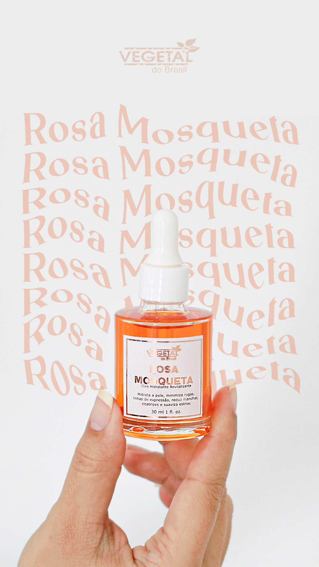 O óleo revitalizante de rosa mosqueta Vegetal do Brasil reduz sinais da idade e é utilizado na conservação da textura da pele. Possui uma textura leve e seca, de fácil aplicação, que deixa um acabamento aveludado e macio na pele. O óleo de semente de rosa mosqueta tem um potente efeito regenerador e uniformizador, rico em ácido graxo ( ômega 3 e 6 ) vitamina A