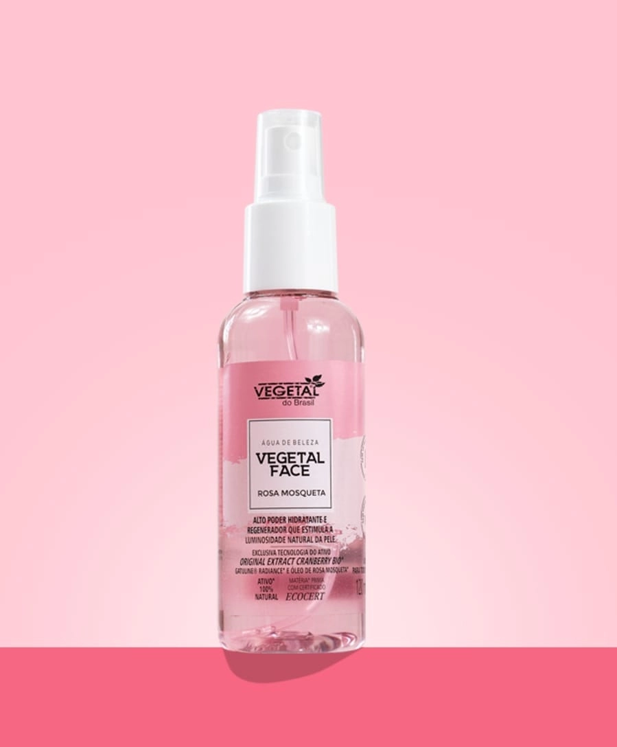 A Água de Beleza Rosa Mosqueta Vegetal Face, contém em sua fórmulação o óleo de Rosa Mosqueta que possui alto poder hidratante e regenerador.